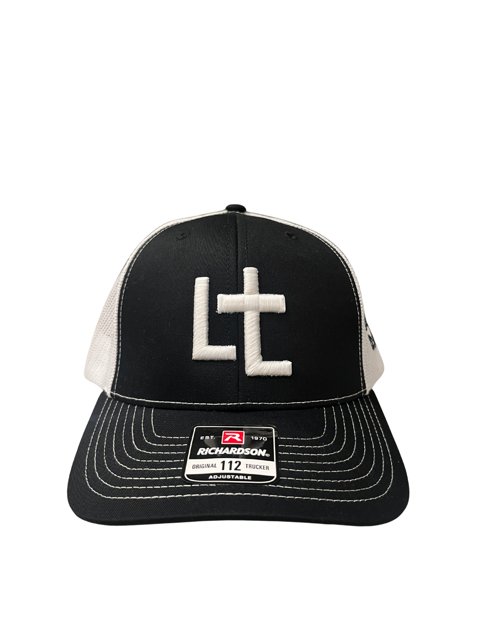 The infamous Richardson 112 trucker hat. Black on white hat with white 3D embroidery on the front, featuring the bible verse Proverbs 13:4 on the side.
